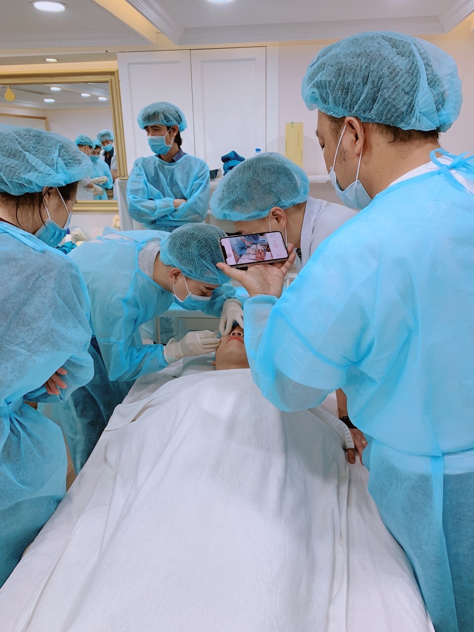 • Thực hành tạo hình và trẻ hóa vùng mặt như: Nâng cơ mặt, làm đầy rãnh cười bằng chỉ chuyên dụng; nâng cơ, tiêu mỡ nọng cằm; tạo má baby; nâng cao trụ mũi; làm thẳng sống mũi; trẻ hóa vùng mặt nâng cao.